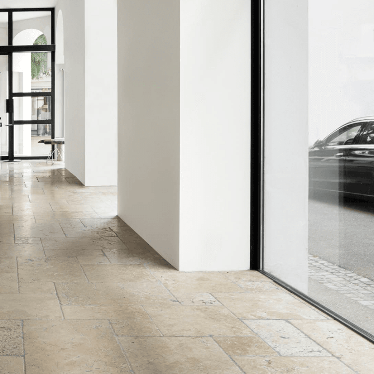 De Classic Travertin Vloertegel Kleine Roman Set 1.2 cm Model A Getrommeld biedt een breed scala aan toepassingsmogelijkheden die het mogelijkhedenpalet in zowel binnen- als buitentoepassingen verbreden. Voor binnentoepassingen zijn deze tegels bij uitstek geschikt voor woonruimtes, zoals slaapkamers, woonkamers, en eetkamers. Hun natuurlijke uitstraling en neutrale tinten dragen bij aan een warme en stijlvolle sfeer. Bovendien kunnen ze perfect worden toegepast in keukens en badkamers, waar de waterafstotende eigenschappen van travertin een functioneel en visueel aantrekkelijk alternatief bieden.